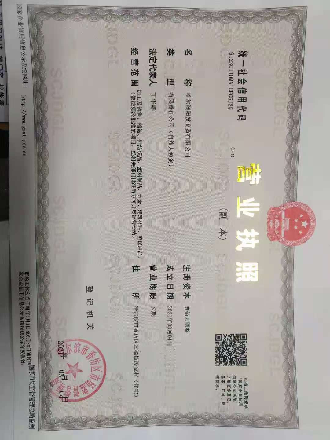 以上营业执照信息来源于卖家自行申报或工商系统数据,具体以工商部门登记为准。经营者需确保信息真实有效,平台也将定期核查。如与实际不符,为避免违规,请联系当地工商部门或平台客服更新。